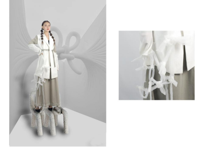 将中国传统元素万字结与现代女装结合运用,以传统的万字结为基础元素,再将万字结的造型、色彩加以改良,与现代女装的潮流、优雅、简约的风格碰撞,既保留传统元素又符合当今审美,设计出符合当代女性风格的展现独特个性的现代女装。
