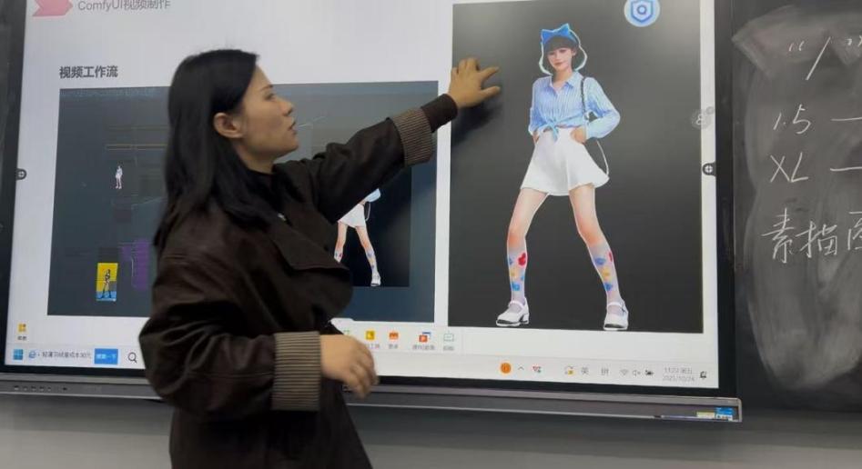 10月24日上午,胡潮江老师带来了题为“AI时尚设计:Midjourney + ComfyUI驱动创意与成衣的新路径”的精彩分享。她系统介绍了如何将Midjourney生成的概念图,通过ComfyUI这一可视化工作流工具进行精细化控制和深化设计,从而实现从创意灵感到成衣款式的高效转化,为参训教师拓宽了AI设计的应用维度。