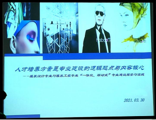 会议第二部分由王院长就“人才培养方案是专业建设的逻辑起点与内容核心”进行了专业建设的探索。王院长在会议中指出,合理地制定人才培养对于专业建设是非常重要的,我们专业在制定时,可遵循“应用型、地方型、开放式”、“为区域服装产业服务”、“与同类院校错位发展”等指导原则。先进行调研,结合产业需求梳理原有的人才培养方案,以明确专业定位,确定人才培养目标;再研讨确定课程体系、课程开发及核心课程群;最后通过行业企业及高校专家论证进行再次的梳理。会议上王院长还强调了“一体化、联动式”专业建设的基本维度与对策,从课程、标准、方法、师资、机制、就业等方面细致地讲解了各方面的主要内容及重点。人才培养坚持学生是主体,立足人才培养目标,强调同学们的关键能力、岗位能力、专业能力及基础能力的培养,王院长提出对于培养目标可实行年度能力达标基准,培养目标按学年递进。会议最后王院长提出了专业建设的措施,即以实践教学改革为突破,协同创新突破,凸显专业特色进行专业建设。