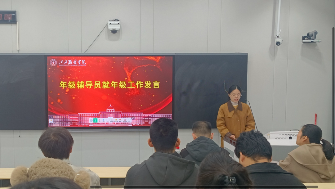 随后,学工办主任张敬玲结合《第二课堂成绩单手册》等文件,围绕“严守学业底线、强化学分管理”提出具体要求。她明确,2023级本科生须修满至少3个第二课堂学分和1.5个劳动教育学分,并提醒同学们重视挂科课程(含网络选修课、专业课、公共课)的重修机会,确保学业进度顺利推进。针对部分班级学分未达标的情况,张敬玲对学生干部作出具体分工:团支书牵头统计班级第二课堂学分完成情况,每周向班主任汇报动态;学习委员建立网络选修课进度台账,定期提醒同学完成课程与考试;全体干部共同组建“重修帮扶小组”,通过“传帮带”形式为有需要的同学提供学习支持,积极营造“互帮互助、共同进步”的良好学风。