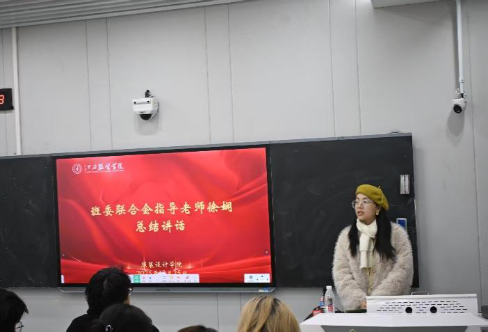 在听取完述职报告后,班委联合会指导老师徐娴作总结讲话。徐老师首先对全体学生干部在本学期的辛勤工作表示肯定,并对大家取得的优异成绩表示祝贺。她指出,学生干部是连接学院与学生的桥梁和纽带,希望大家能够继续发挥模范带头作用,不断提升自身综合素质和服务能力。同时,徐老师也对下一阶段的工作提出了具体要求,希望全体学生干部能够继续秉持“服务同学、锻炼自我”的宗旨,为学院的发展贡献青春力量。