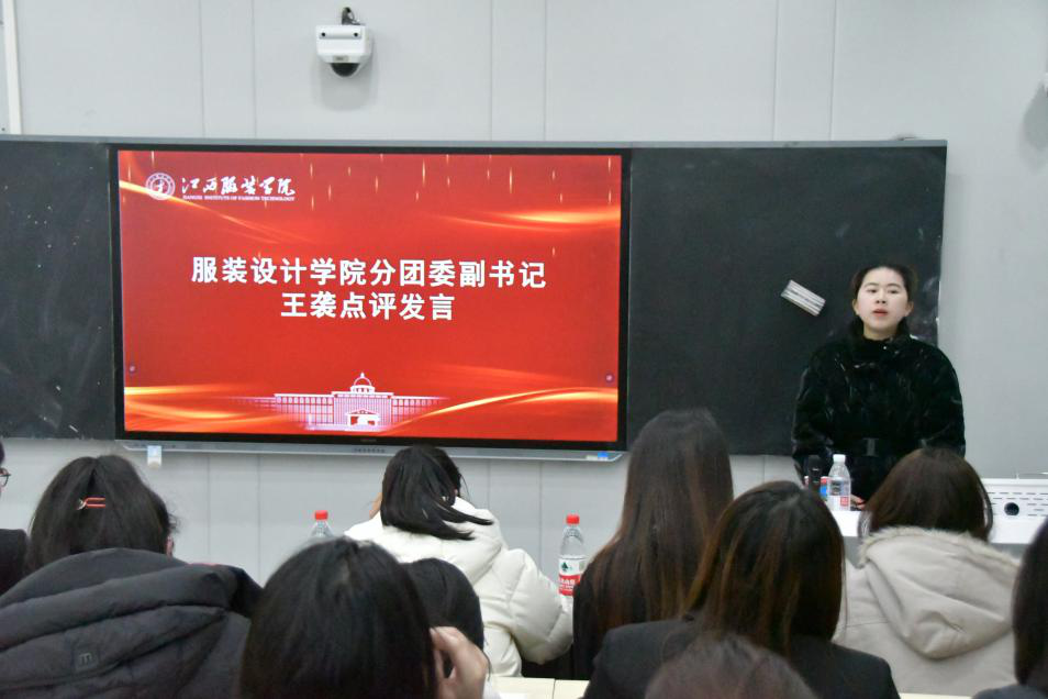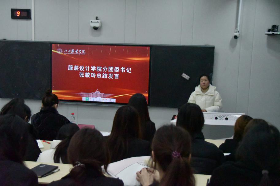 最后,分团委书记张敬玲老师作总结讲话。她系统梳理了学院分团委、学生会近期在思想引领、校园文化建设、学生服务等方面的工作重点与成果,并对未来工作提出三点明确期望:一是持续强化思想引领,以主题学习、实践活动为载体,不断筑牢青年学生的理想信念根基;二是深化专业融合赋能,立足服装设计学科特色,推动团学工作与专业学习、实践创新有机结合,打造特色鲜明的工作亮点;三是优化工作机制效能,加强部门间协同配合,提升学生组织的凝聚力与执行力。张敬玲老师鼓励全体学生干部发挥模范带头作用,在平衡专业学习与工作实践的过程中锤炼综合能力,努力成长为高素质的服装设计专业人才与青年骨干。