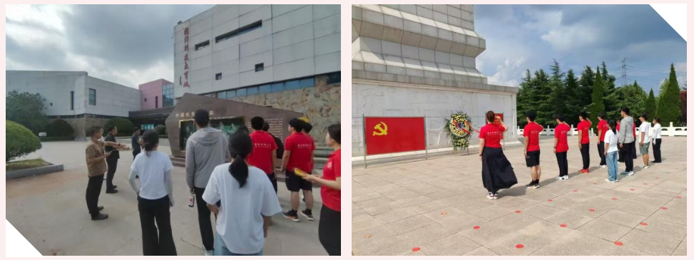7月21日,她陪同青岛科技大学实践队前往大坞镇烈士陵园,在庄严肃穆的氛围中,向革命先烈敬献花圈、鞠躬致敬,聆听先烈们为国家解放、人民幸福英勇献身的故事,深刻感悟革命精神的时代价值;随后走进国防科技城,近距离接触先进国防装备,直观感受国家国防力量的强大,进一步坚定了“强国有我”的理想信念。