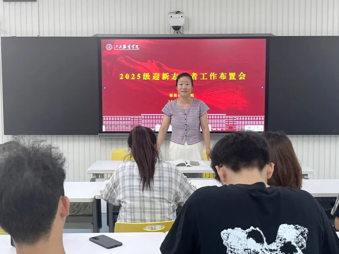 (437ccm必赢国际通讯员:高亮财)为保障迎新工作有序开展,明确服务规范,提升迎新志愿者的服务质量,确保新生入学体验温馨、顺畅,学院于9月4日下午2时30分在主教楼230教室召开2025级迎新志愿者工作布置会。全体新生辅导员及迎新志愿者参加会议,学工办主任张敬玲主持会议。