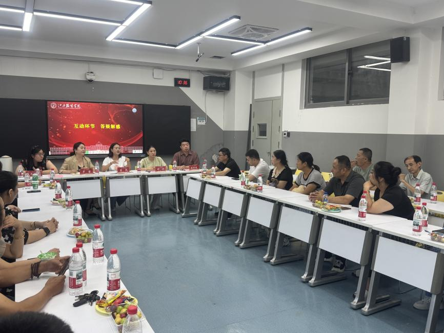 在互动环节,家长们围绕“学业与实践平衡”“海外交流申请”“职业发展方向”等热点问题踊跃提问,学院领导与教师代表逐一回应、细致解答。“孩子想参加学科竞赛,学校有哪些资源支持?”“服装专业就业前景如何?”面对家长关切,与会老师结合行业趋势与学院案例,提出“以赛促学、以创促就”的建议;教研室主任则通过校企合作项目成果,直观展现专业应用场景,打消家长疑虑。