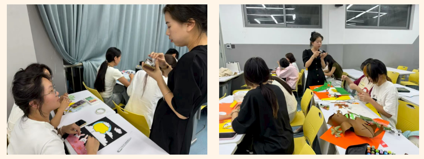教室早已变身“秋日手作工坊”:桌上摊着红豆、小米、绿豆拼成的“稻田色块”,软乎乎的超级黏土被捏成圆滚滚的秋兔、沉甸甸的麦穗,连空气里都飘着“丰收的味道”。“第一次用小米拼稻田!颗粒感落在卡纸上,像真的踩在秋天的田埂上。”23级服设专业的陈同学,正对着自己的“五谷秋分图”笑眼弯弯,指尖还沾着几粒没粘牢的红豆。