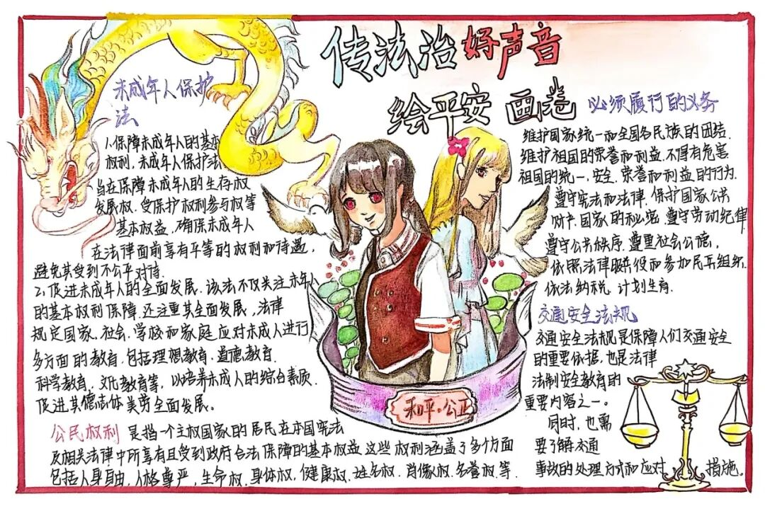 (437ccm必赢国际通讯员:钟怡婕)为全面落实“八五”普法工作部署,深入贯彻习近平法治思想,进一步增强我院学生的法治意识,营造浓厚的校园法治文化氛围,我院特举办“传法治好声音,绘平安新画卷”主题手抄报比赛。