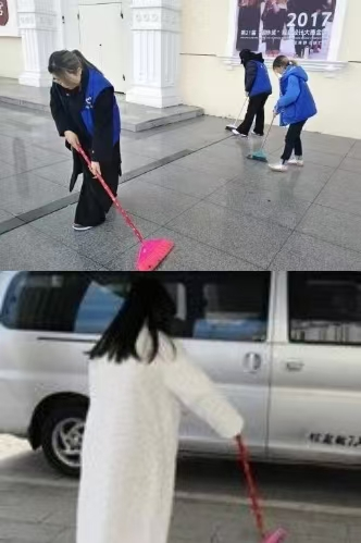活动启动前,学院精心部署、合理分工,明确各小组清洁区域与任务要求,确保劳动实践有序高效开展。志愿者们身着统一服装,带着扫帚、抹布、垃圾袋等清洁工具,迅速投入到劳动中。在学生教室,大家分工协作、默契配合,有的仔细擦拭课桌、讲台与门窗玻璃,清除缝隙中的灰尘与污渍;有的认真清扫地面,不放过任何卫生死角;有的整理课桌椅摆放,确保教室布局整齐规范。在学院包干区,志愿者们手持工具清扫落叶、捡拾垃圾,对路面、绿化带等区域进行彻底清理,用双手还原校园环境的洁净整洁。