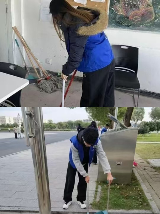 劳动过程中,志愿者们热情高涨、干劲十足,不怕脏、不怕累,不放过每一处细节。汗水浸湿了衣衫,却挡不住大家劳动的热情与服务同学的初心。经过共同努力,学生教室窗明几净、桌椅整齐,学院包干区路面洁净、环境宜人,校园面貌焕然一新,为同学们打造了更加舒适的学习生活空间。
