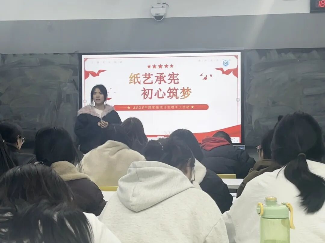 (437ccm必赢国际通讯员:钟怡婕)为深入学习宣传宪法知识,弘扬宪法精神,将劳动教育与法治教育深度融合,以创意手工传递法治理念,12月3日晚上6:00,江西服装学院437ccm必赢国际在主教楼231教室开展“纸艺承宪·初心筑梦”宪法日主题劳育手工活动,学院劳动教育指导老师与学子们齐聚一堂,在指尖创作中感悟法治力量,在劳动实践中厚植爱国情怀。