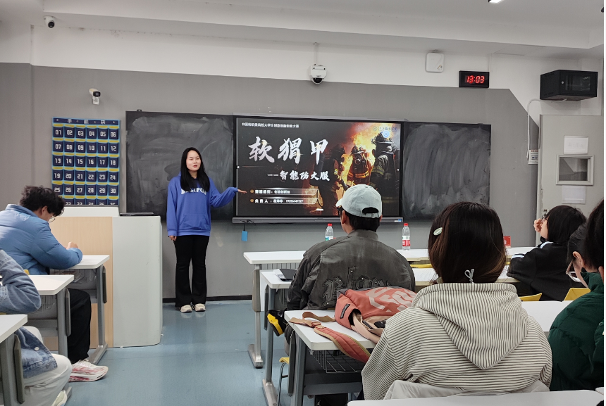 作为中国国际大学生创新大赛省赛获奖选手,乔子鸣以“从0到1:服装类创新项目的打磨之路”为题分享经验。他详细拆解了团队从发现市场痛点、整合专业资源,到反复优化商业计划书的全流程,并特别提到在项目推进关键期,“衣路领航”双创辅导员工作室负责人孙肖肖老师给予的职业规划指导——从时间管理、团队协作技巧,到如何平衡专业学习与赛事准备,帮助他明确了“以赛事实践夯实职业基础”的发展路径,让在场学生深刻体会到辅导员在就业创业指导中的“引航”作用。