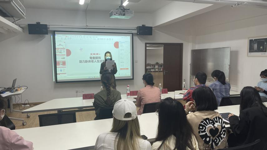 大赛开始前,由主持人郝晴宣读了大赛流程和评分规则,本次院内选拔赛由参赛团队按抽签顺序轮流进行PPT路演,每个团队路演限时5分钟。由评委对其项目的总体情况进行点评,然后根据项目的教育维度、商业维度、团队维度、创新维度、社会价值维度等几个方面进行评分。