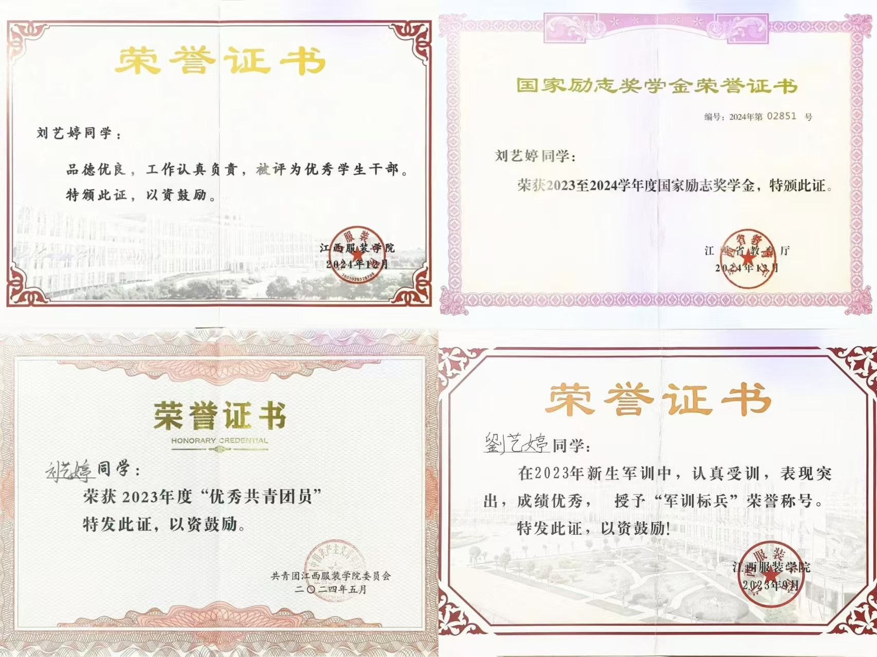 2024年5月,荣获“优秀共青团员”称号;