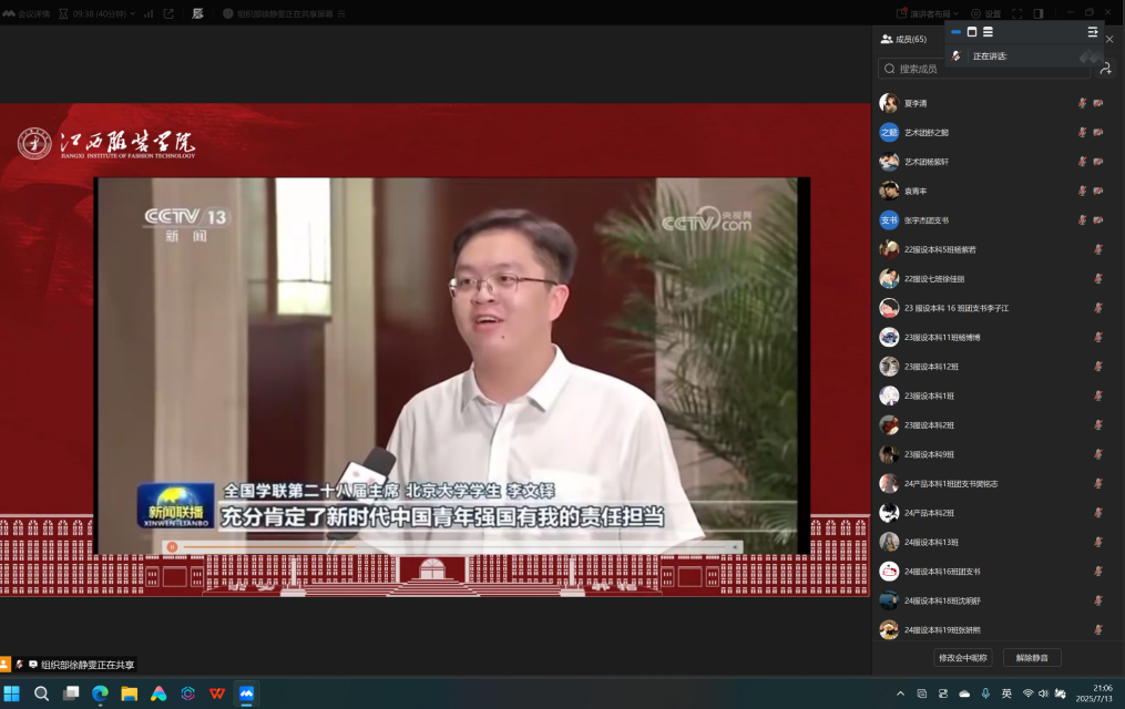 学生会部长代表张文沙结合专业谈到:“习近平总书记的贺信饱含着对青年一代的深切关怀和殷切期望,让我深刻认识到新时代青年肩负的历史使命。作为新时代大学生,我们要始终牢记"坚定不移跟党走"的政治方向,把个人理想融入党和国家事业之中。贺信中强调的"争做有理想、敢担当、能吃苦、肯奋斗的新时代好青年"为我们指明了成长方向,我将以更高的标准要求自己,在专业学习中精益求精,在实践中锤炼本领,努力成为堪当民族复兴重任的时代新人。”