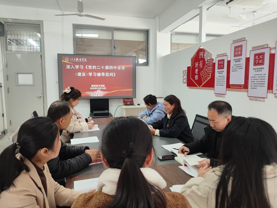 会上,党委书记蓝岚首先领学辅导百问核心章节,并结合学院工作指出,党的二十届四中全会精神为教育事业发展指明了方向,学校全体党员干部要聚焦“十五五”时期教育高质量发展要求,将全会精神与立德树人根本任务紧密结合,在课程改革、师德建设、学生培养等教育教学各环节精准发力,切实把理论学习成果转化为提升教育教学质量的具体行动。随后,与会人员聚焦辅导百问中“十五五”时期历史方位、高质量发展主题等重点内容,通过专题研讨、互动交流等形式深化学习理解,一致认为辅导百问是学习领会全会精神的权威读本,为做好教育教学工作提供了根本遵循。