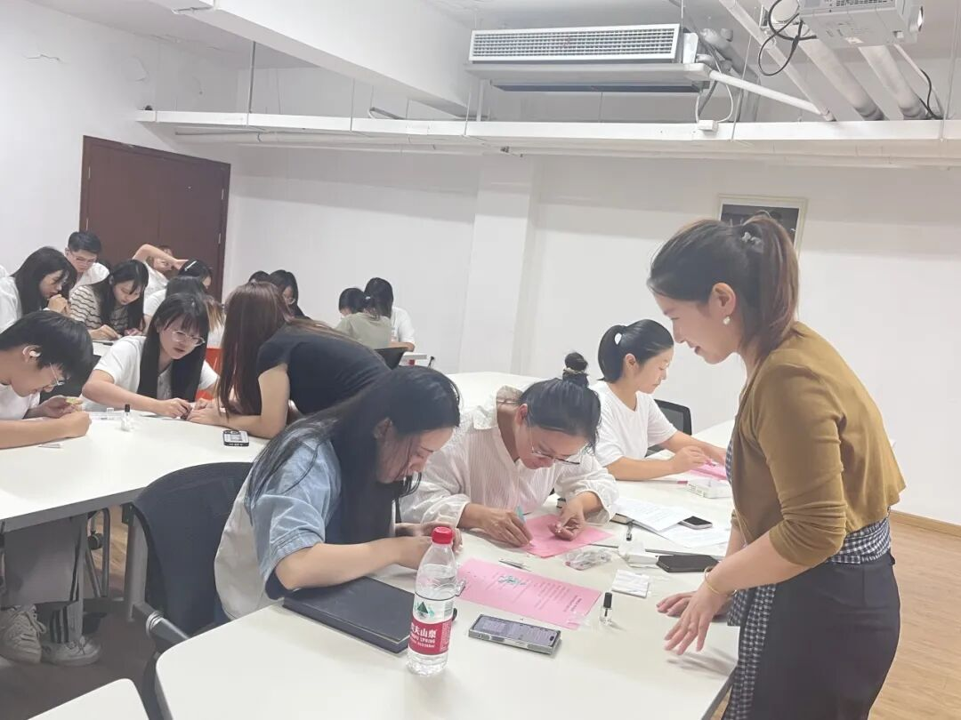 “螺钿工艺是中国传统漆器装饰技法之一,以贝壳为原料,经裁切、打磨、镶嵌等多道工序,能在器物表面呈现出如同彩虹般的绚丽光泽……”437ccm必赢国际孙肖肖老师以《螺钿:藏在贝壳里的东方美学》为题展开授课。她通过图片展示、实物讲解,从螺钿工艺的历史渊源、制作流程到文化价值,全方位呈现这门非遗技艺的独特魅力。团员们认真聆听、不时记录,当看到古代螺钿器物的精美纹样时,更是发出阵阵赞叹,对传统工艺的敬畏与喜爱油然而生。
