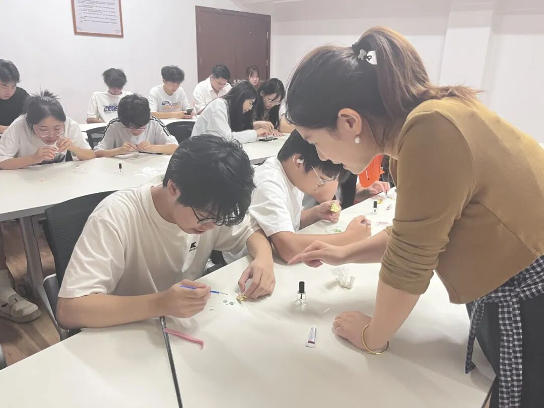 学院分团委书记张敬玲在总结讲话中表示,本次示范性主题团日活动是学院推动“传统文化进校园、进团支部”的生动实践。她强调,服装设计专业与文化传承有着天然的联结,团员青年要以螺钿工艺为切入点,主动探索传统美学与现代设计的融合路径,让中华优秀传统文化在时尚领域焕发新活力。同时,她希望24 产品本科5班团支部继续发挥示范引领作用,带动全院更多团员参与文化传承活动中,以青春之我、奋斗之我为文化强国建设贡献力量。