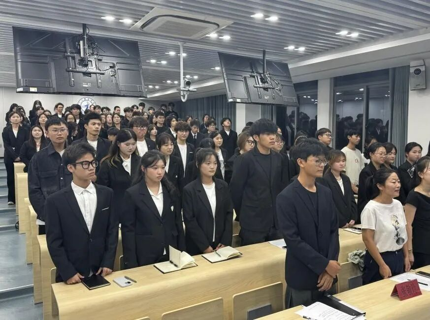 会议在庄严的团歌声中拉开帷幕。全体团学干部起立肃立,高唱《光荣啊,中国共青团》,激昂的旋律不仅唤起了大家对共青团使命的深刻认知,更激发了团学干部们服务同学、建设学院的责任感与使命感。通过集体奏唱团歌,进一步强化了团学干部的组织归属感,为会议奠定了昂扬向上的基调。