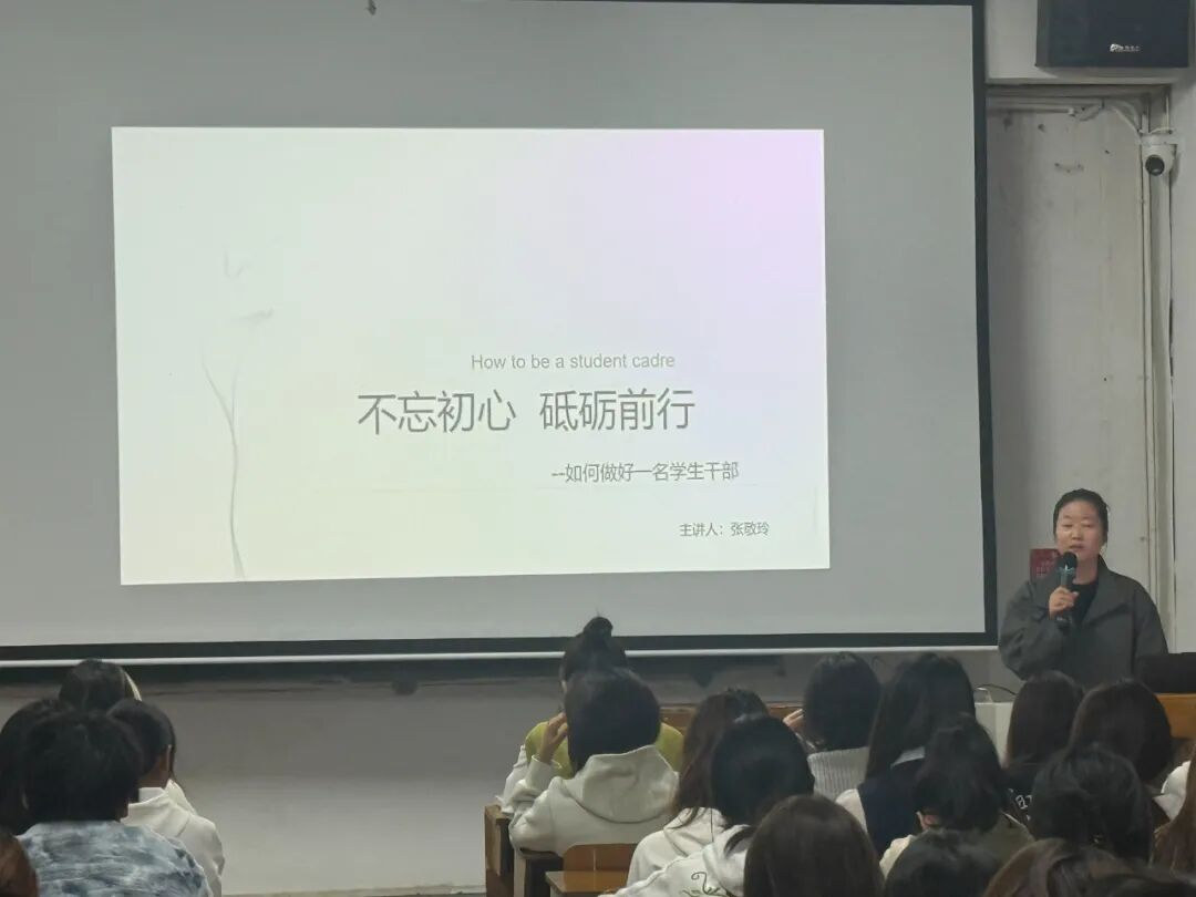 开班仪式结束后,紧接着开展了青马班第一课的授课,本次课程以“不忘初心 砥砺前行——如何做好一名学生干部”为主题。由分团委书记张敬玲主讲,她结合自身多年的学生工作经验,从学生干部的角色定位、职责使命、工作方法、自身修养等方面进行了深入浅出地讲解。她强调,学生干部是联系老师和同学的桥梁和纽带,要始终牢记为同学服务的宗旨,以身作则,发挥模范带头作用。在工作中,要善于沟通协调,注重团队合作,不断提升自己的组织能力和领导能力。同时,张敬玲还向学员们分享了一些学生干部工作中的实际案例,引导学员们思考如何在实际工作中解决各种问题,提高工作效率和质量。
