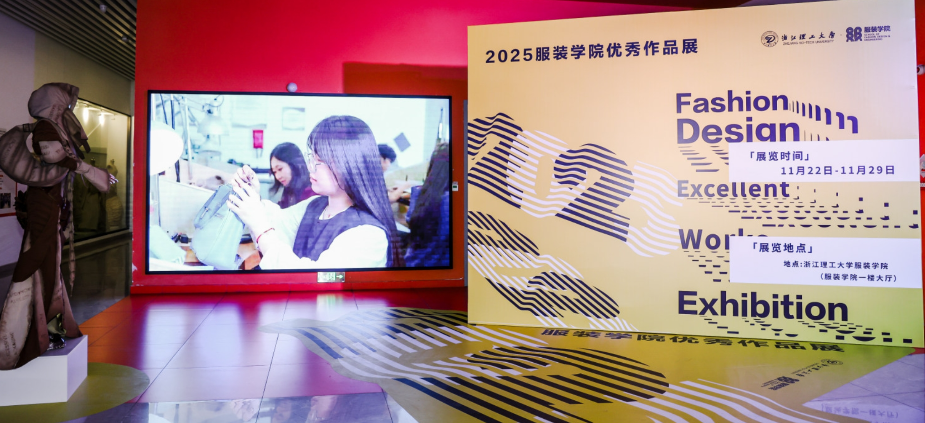 在培训期间,四位教师利用午休时段,走进浙江理工大学优秀学生作品展厅参观。展厅内陈列了服装与服饰设计、纺织