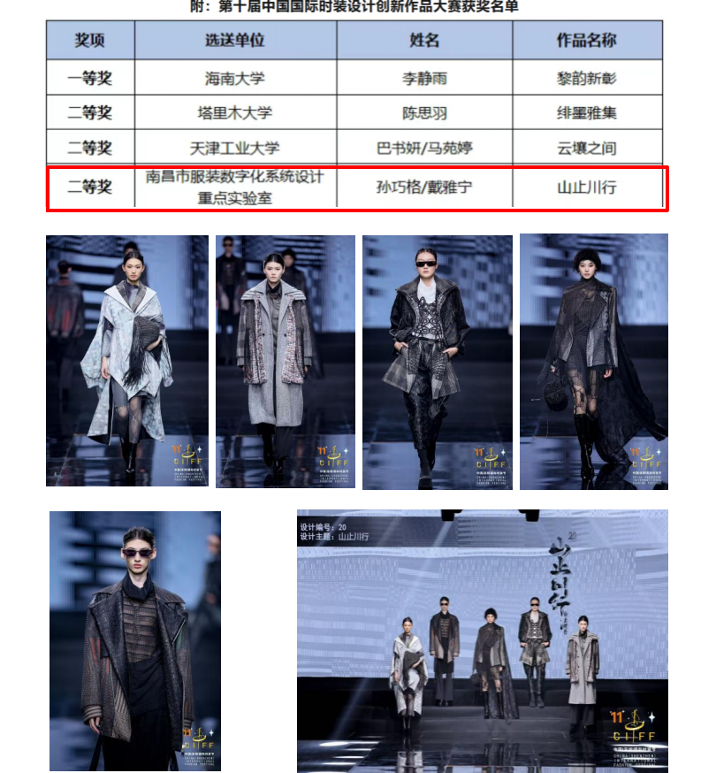 此次获奖不仅是对师生专业能力与创新思维的高度认可,更是江西服装学院在服装设计教育领域深耕不辍、成果斐然的生动缩影。未来,学院将继续秉持“以赛促学、以赛促教、以赛促创”的理念,为学生持续搭建创新实践平台,推动传统文化与现代设计融合,为行业输送更多优质人才。
