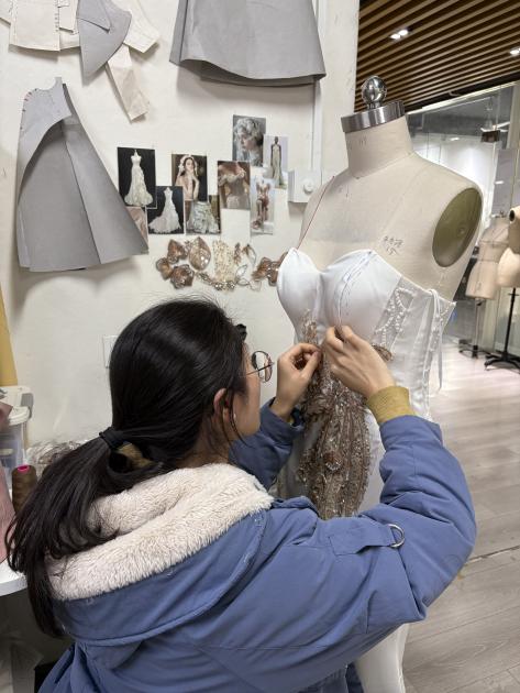 肇达张婚纱礼服产业学院自成立以来,始终深耕服装设计专业建设与人才培养,累计为行业输送优质设计人才300余名,围绕婚纱礼服项目完成设计与定制相关成果500余件。其中,学院孵化的大学生创业品牌“红熹花田”,凭借鲜明的设计风格与过硬的产品品质,相继亮相北京、武汉、南京等多个大型时尚平台,收获业界广泛认可与良好社会反响,成为学院人才培养与成果转化的亮眼名片。