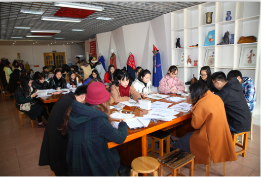 (虎都副总胡明定在华服研究院指导学生设计华服)