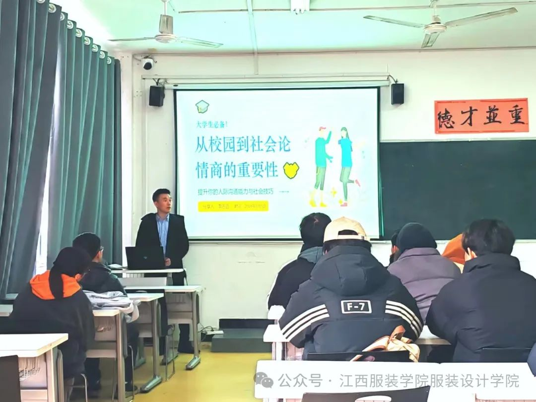 为凝聚校友力量,助推学校发展,加强校友与母校之间的联系,充分发挥优秀校友的标杆和模范作用,3月1号,2007级服装设计专业优秀校友李志远为我学院学生作题为“从校园到社会论情商的重要性”的主题讲座。